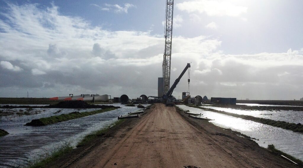 O Parque Eólico 18 de Julio, no Uruguai, foi implantado em terreno alagado com baixa capacidade de suporte, anteriormente utilizado para cultivo de arroz. O geotêxtil tecido de elevado módulo de rigidez Basetrac Woven foi aplicado para fornecer separação granulométrica e reforço do solo. Nas áreas de maior sobrecarga, duas camadas de geogrelhas Fortrac de PVA foram utilizadas em conjunto, garantindo estabilidade para guindastes de até 400 toneladas. A solução reduziu custos em relação a alternativas tradicionais e assegurou operação segura em condições críticas.